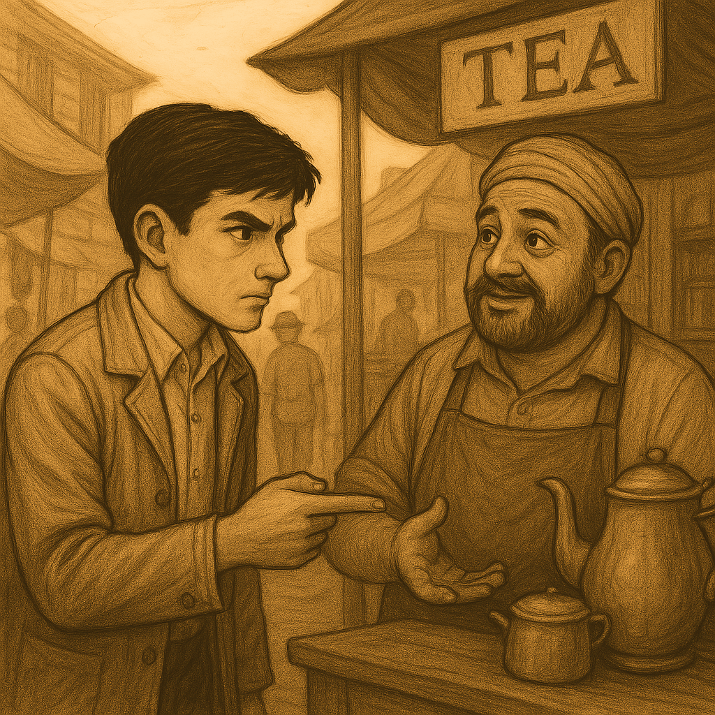 Together, they walked back to the tea stall, where Raj, the ever-smiling tea vendor, was busy pouring hot masala chai for his customers.