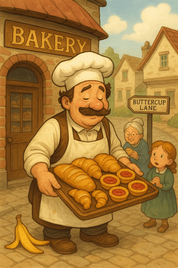 Once upon a time, in the quaint little town of Buttercup Lane, there lived a baker named Oliver Crumb. Oliver was famous for two things: his heavenly pastries and his absolutely disastrous luck. It was said that if there was a banana peel within a hundred miles, it would somehow travel across continents just to be under Oliver’s foot. Despite his misfortunes, Oliver had a heart as warm as his oven. Every morning, he would bake fresh bread, buttery croissants, and his legendary jam tarts. He gave free pastries to the elderly, added extra frosting for children, and even made sugar-free biscuits for grumpy Mr. Flint, who claimed sugar was “the root of all evil.”